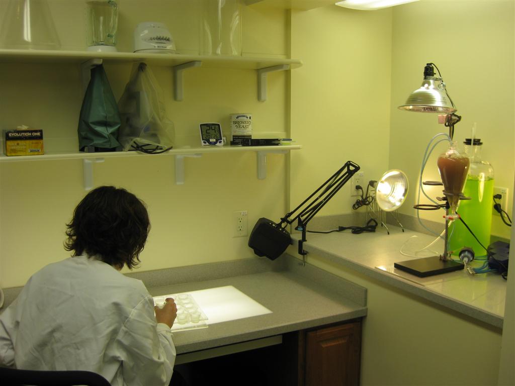 Culture laboratory. The culture laboratory is separated from testing areas to avoid possible contamination in the culture organisms and in the preparation of food (algae, YWT – yeast/wheat grass/trout chow, and brine shrimp).