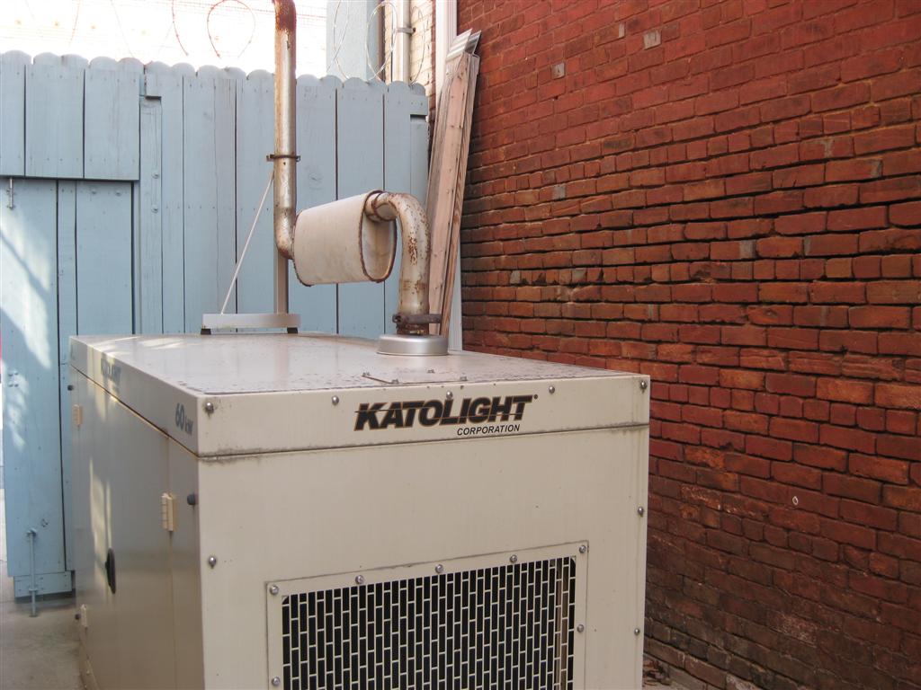 Backup power supply. A 60 KW natural gas powered generator supplies backup power to the building.