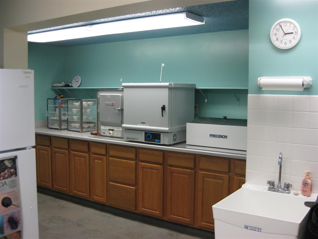 Wastewater testing laboratory. Various ovens are used to determine the amount of solids contained in groundwater and wastewater samples. Water baths are used to incubate fecal coliform samples.